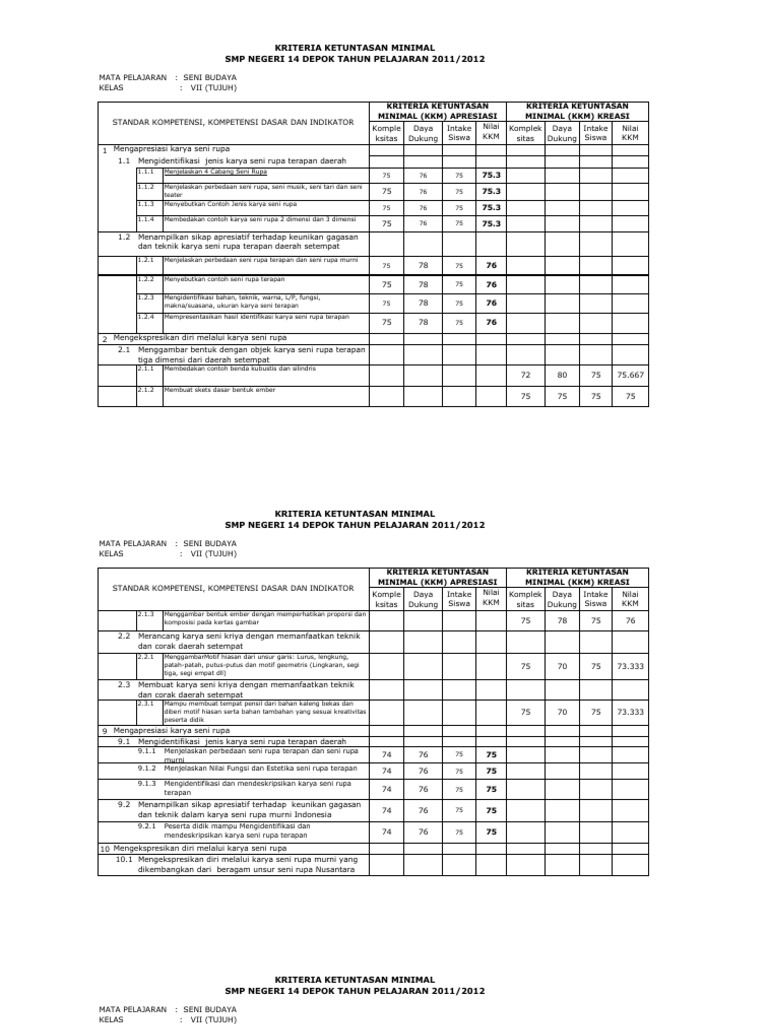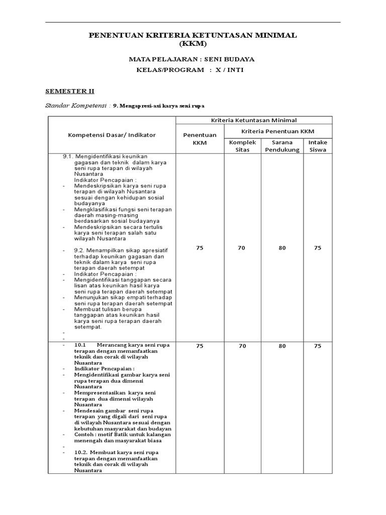 Format Kkm Seni Rupa X Xi Xii Pdf Document from demo.fdokumen.com Download kkm k13 kelas 9 pai & bp revisi terbaru semester 1 download semester 2 download. Kkm seni budaya kelas 9 k13 merupakan kriteria paling rendah atau minimal untuk menyatakan peserta didik mencapai ketuntasan dalam kegiatan penilaian. 70 siswa inteks kkm 1.1 mengidentifikasi seni rupa murni yang diciptakan di mancanegara indikator pencapaian kompetensi prasarana sarana/ seni rupa 1. Berikut ini rpp, silabus, prosem, prota, kkm, sk&kd, smp kurikulum 2013 kelas 7, 8 , 9 lengkap revisi 2016 sebagai perangkat pembelajaran dalam proses kegiatan belajar mengajar Mengapresiasi karya seni rupa 9.1 mengidentifikasi jenis motif hias pada karya seni rupa nusantara daerah lain Rpp k 13 kelas 9 kd 3 1 seni lukis. Perangkat pembelajaran merupakan perangkat administrasi guru yang di persiapkan guna buat membantu kontrol jalannya aktivitas. Prota dan promes seni budaya smp kurikulum 2013 revisi 2017, prota dan promes seni budaya kelas 7 8 9 kurikulum 2013 revisi 2017, prota promes seni budaya rpp kurikulum 2013 revisi 2017 2018 2019 rpp k13 smp, silabus, prota dan promes, kkm, administrasi guru, buku guru, buku siswa, revisi 2018, soal, uas, ukk, un, usbn, ukg, pkg.
